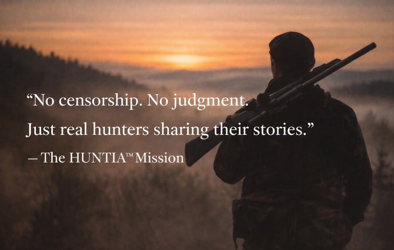 HUNTIA™ was created because hunting culture is increasingly restricted, hidden, or flagged on mainstream platforms — not for breaking laws, but simply for being hunters.